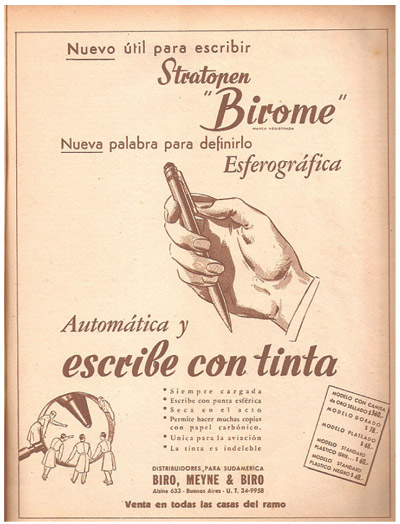 لازلو بیرو اختراع خود را در سال 1943 ثبت نمود و به آرژانتین مهاجرت کرد و در آنجا مشغول به تولید انبود خودکارش نمود .