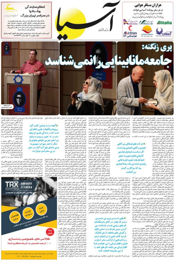 بازتاب اهدای قلم پری زنگنه یوروپن در روزنامه آسیا